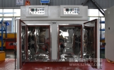 粉末冶金雙溫區精密烘箱主要技術參數 1、內膽尺寸:(寬700*高1130*深500mm)*2; 2、外形尺寸:寬2160*高1700*深700mm; 3、溫度范圍:55~+250℃;
