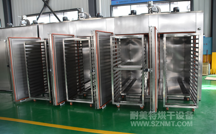 1、烘烤產(chǎn)品:烘箱內(nèi)放置8臺(tái)尺寸為W720*940*1675的推車(推車尺寸與供方原有的同尺寸),每臺(tái)推車上32件托盤(pán);