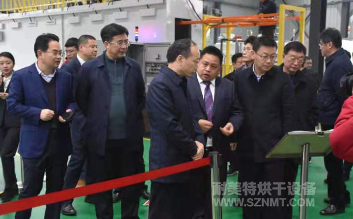 2020年12月9日上午,湖南省常德市委書記、市人大常委會主任周德睿,市委副書記、市長鄒文輝率領(lǐng)全市“開放強(qiáng)市 產(chǎn)業(yè)立市”流動現(xiàn)場會蒞臨湖南省耐美特智能烘干工業(yè)設(shè)備有限公司視察指導(dǎo)工作。縣委書記車世忠,縣委副書記、縣長周功表等一行陪同。